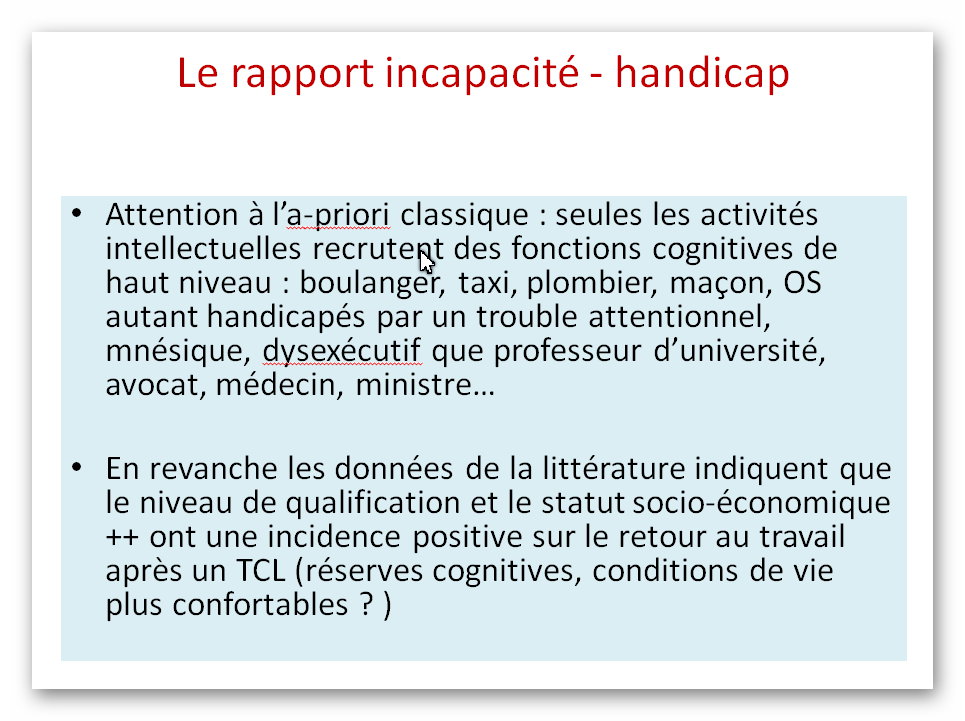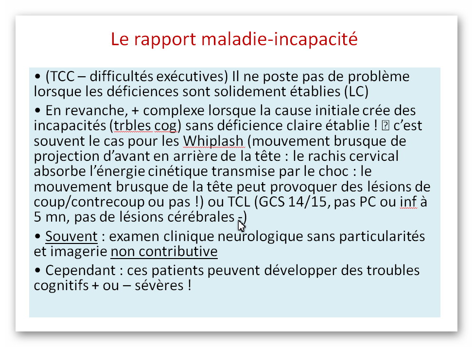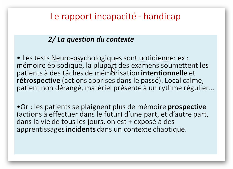 -L’incapacité, c’est le fonctionnel les troubles cognitifs