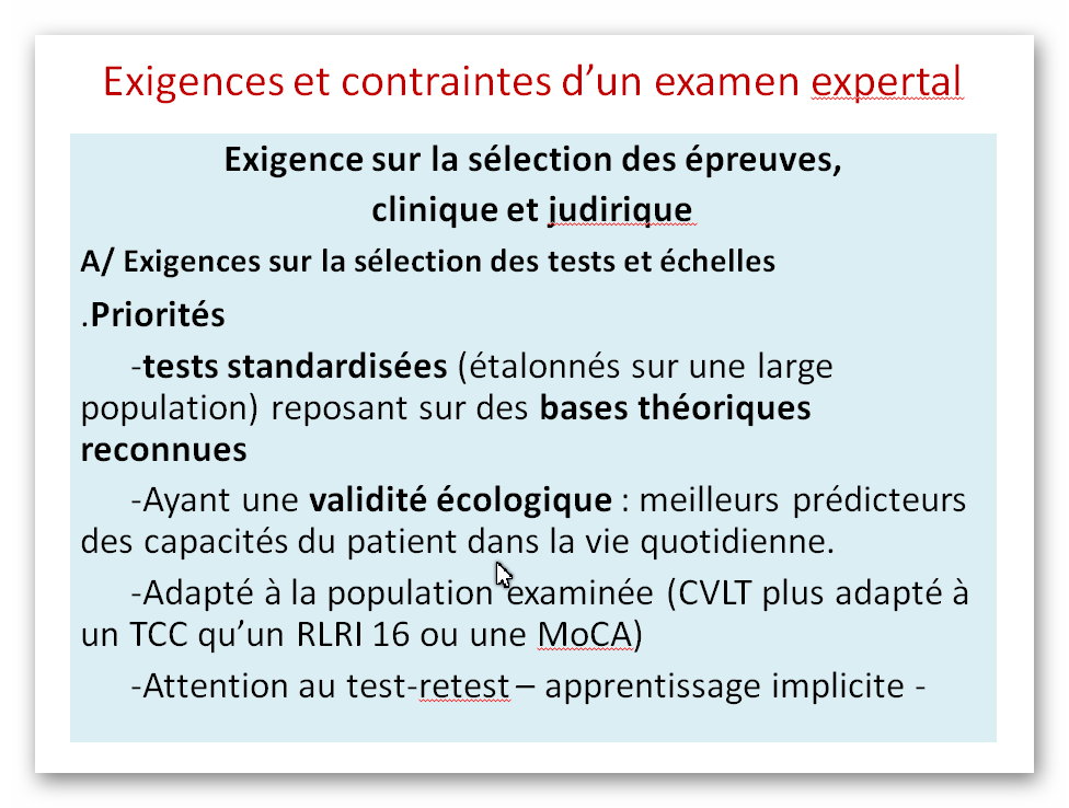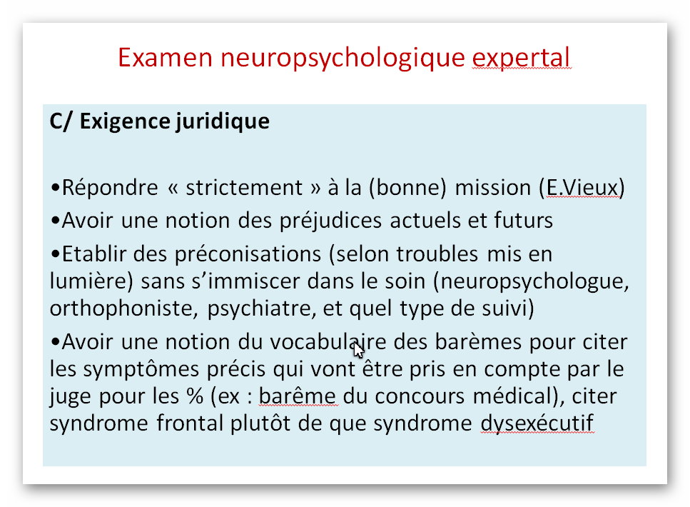 L’examen neuropsychologique expertal a des exigences cliniques et juridiques