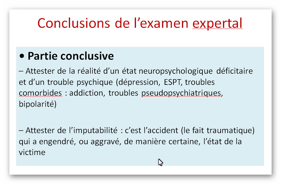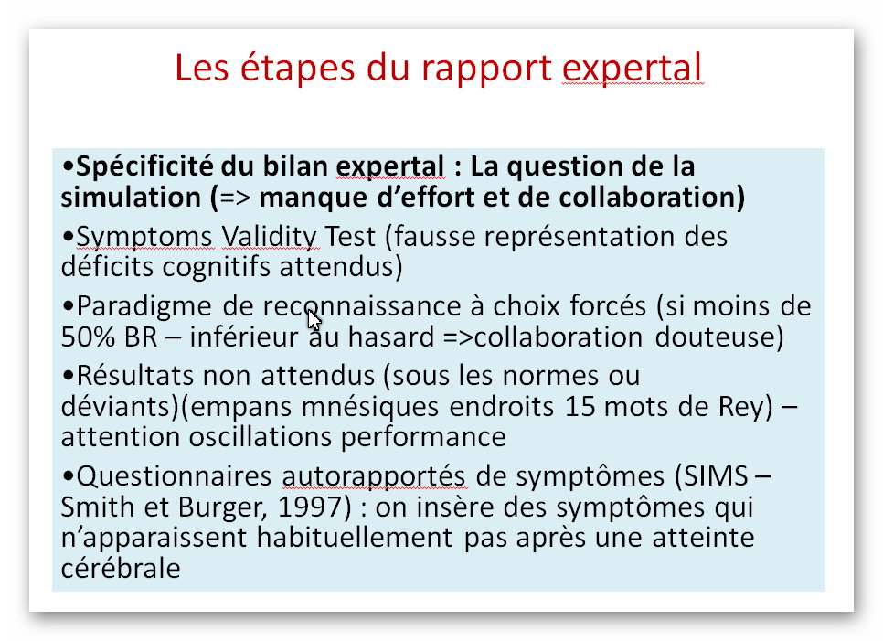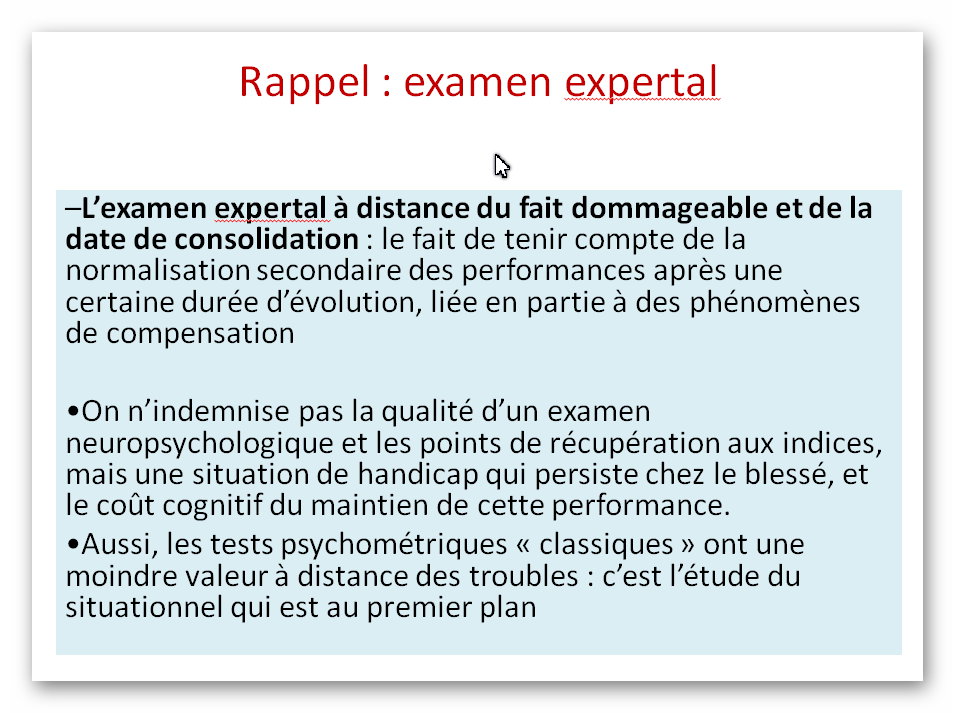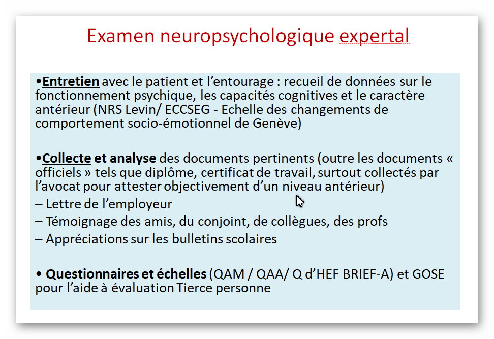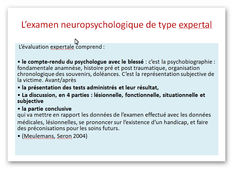L’examen neuro-psychologique expertal se fait alors nécessairement dans le cadre d’une procédure contentieuse.